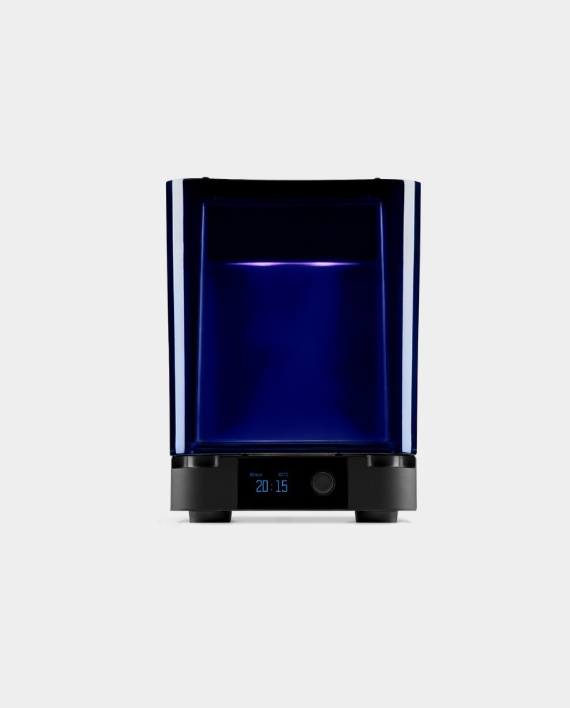La post-polymérisation renforce les propriétés des matériaux d’impression stéréolithographique en améliorant leur solidité et leurs performances. La Form Cure associe précisément la chaleur et les 405 nm de lumière nécessaires à une polymérisation homogène des pièces après impression.
